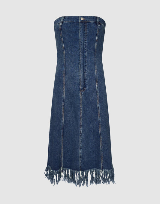 라야 화이트 밴디지 신부 들러리 미디 드레스