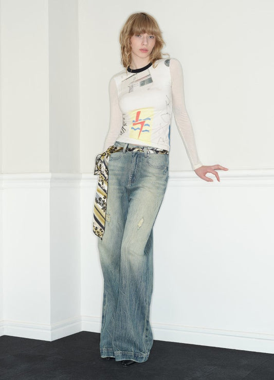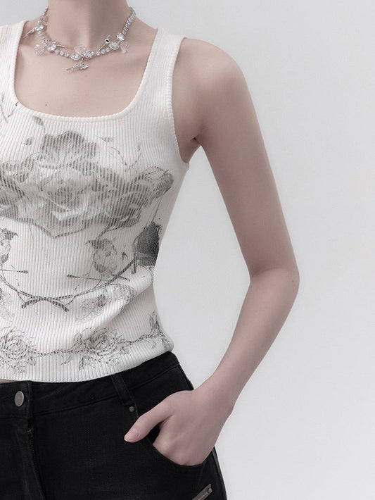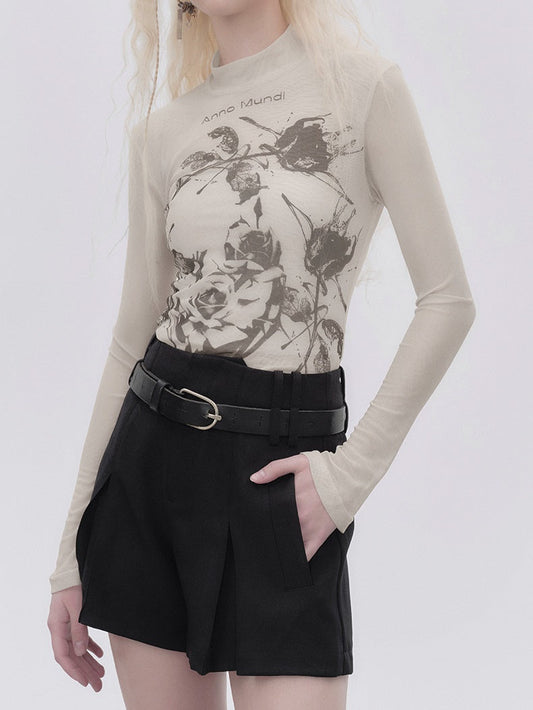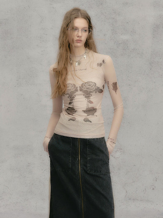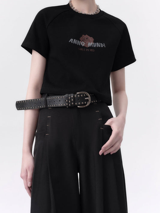 로즈 프린트 라인스톤 쇼트&긴팔 티셔츠