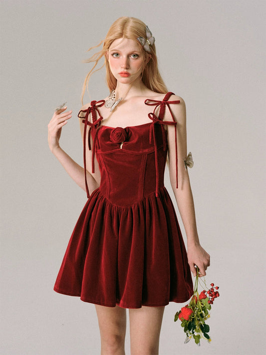로즈스티칭 퍼프슬리브 원피스&슬링슬림원피스