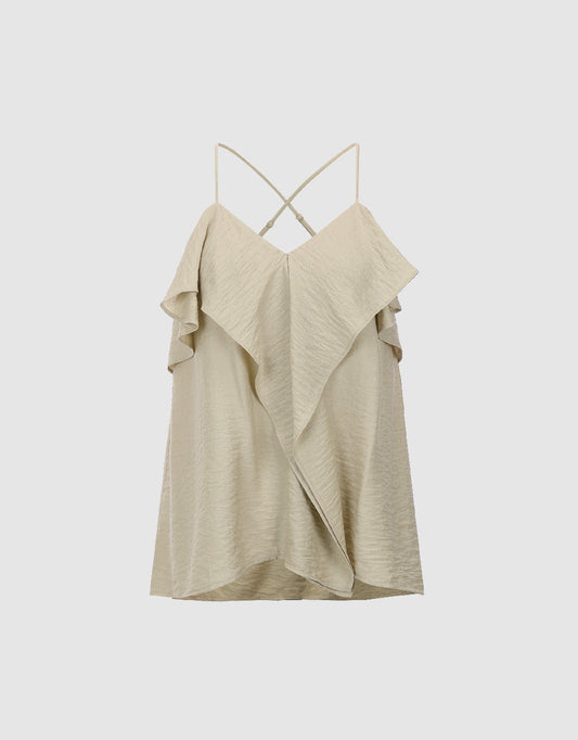 러플 트림 플리츠 새틴 텍스처드 탱크탑
