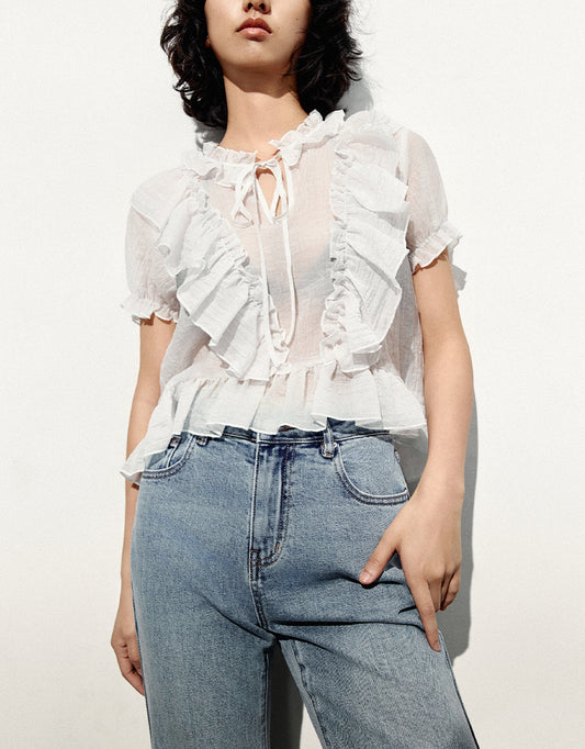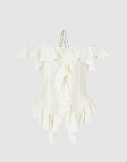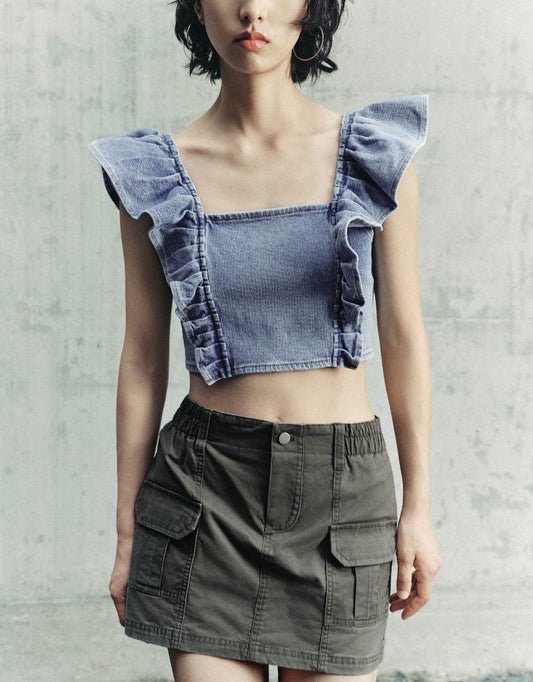 Ruffle Sleeveless Crew Neck Overhead Shirt