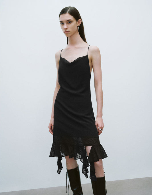 러플 스퀘어 넥 A라인 리틀 블랙 드레스