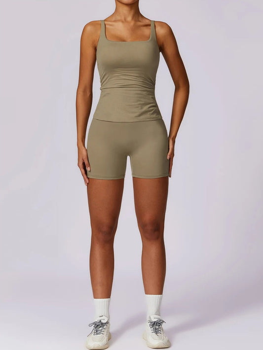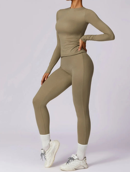 솔기 크롭 코르셋 탑 & 레깅스 액티브웨어 세트