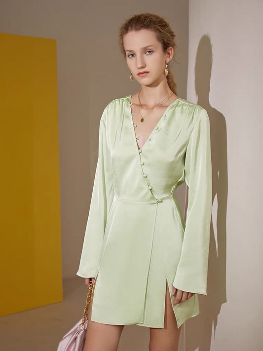 새틴 랩 슬릿 맥시 스커트 브라운 색상