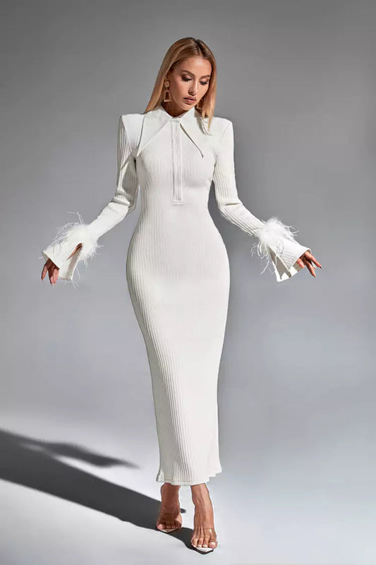 스카프 퍼프슬리브 스퀘어넥 롱원피스