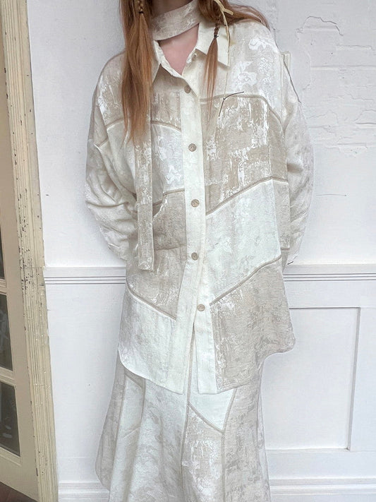 셋업 오버사이즈 패치워크 비대칭 시크 셔츠&롱스커트