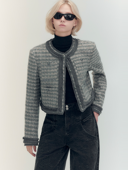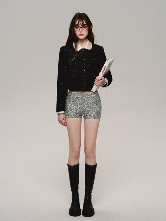 셋업 슈트 시퀸 우아한 노카라 재킷&미니 스커트