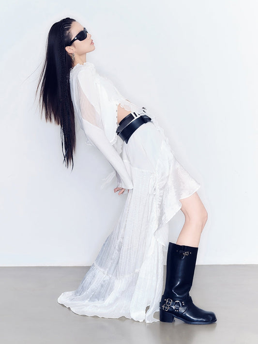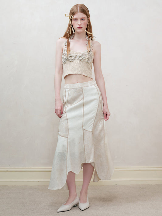 셋업 패치워크 시크 비대칭 레트로 셔츠&롱스커트