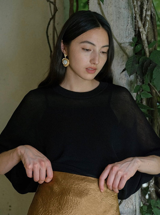 시어 오버사이즈 V넥 루즈 긴소매 여름 니트