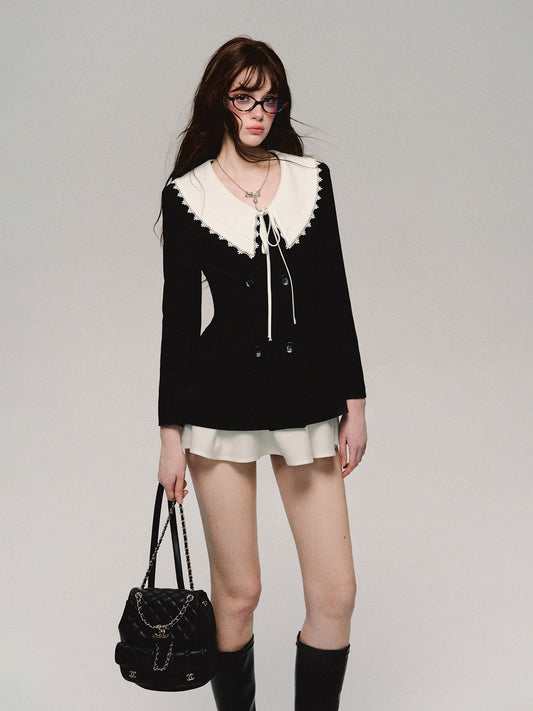 셋업 셋업 모노톤 레이스 리본 큐트 바이컬러 자켓&스커트