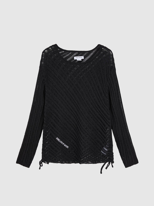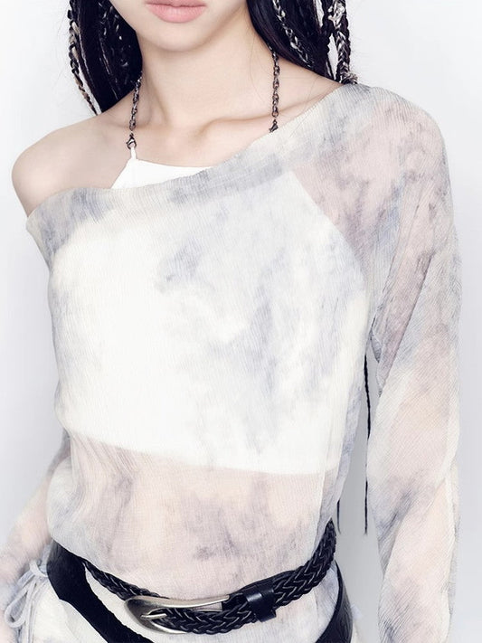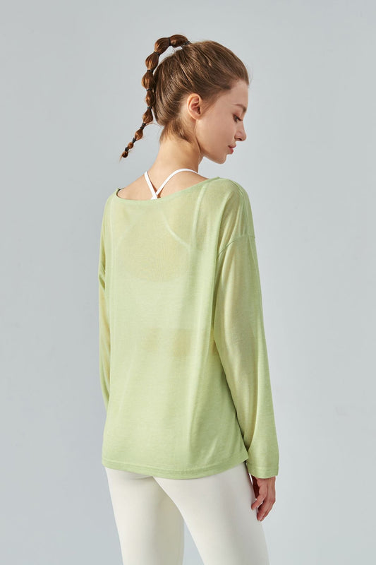 시어 메쉬 긴소매 비대칭 밑단 탑