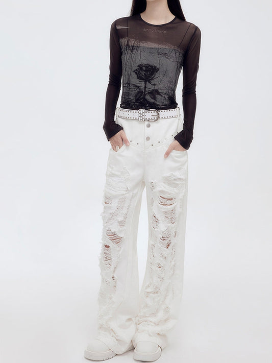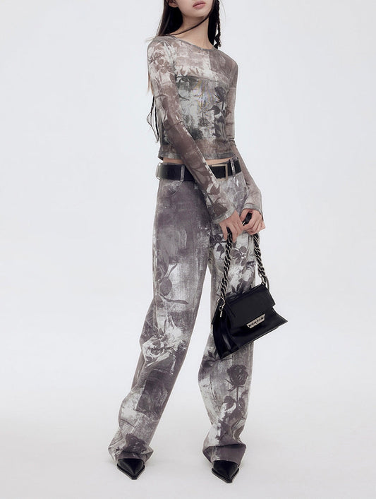 쉬어 메쉬 실루엣 플라워 크롭 컷소우