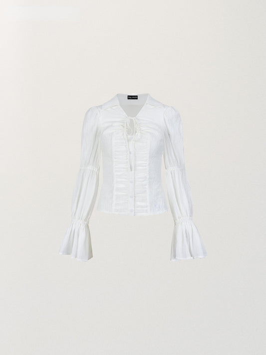 Sheer Puff Sleeve Drawstring Sun Protection Blouse