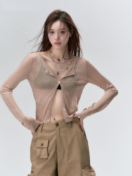 Sheer Knit Rhinestone Sun Protection Cardigan