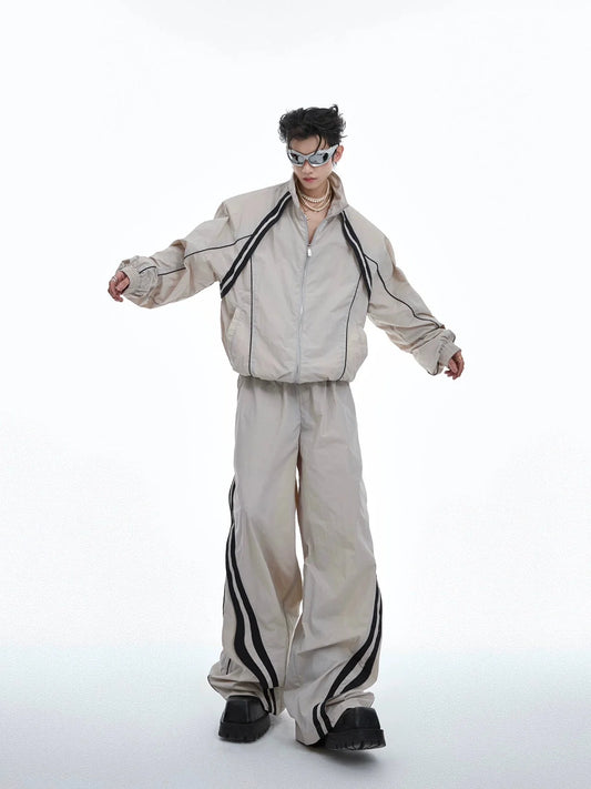 Sporty Racing Stripe Color Block Loose Fit Track Suit with Deconstructed