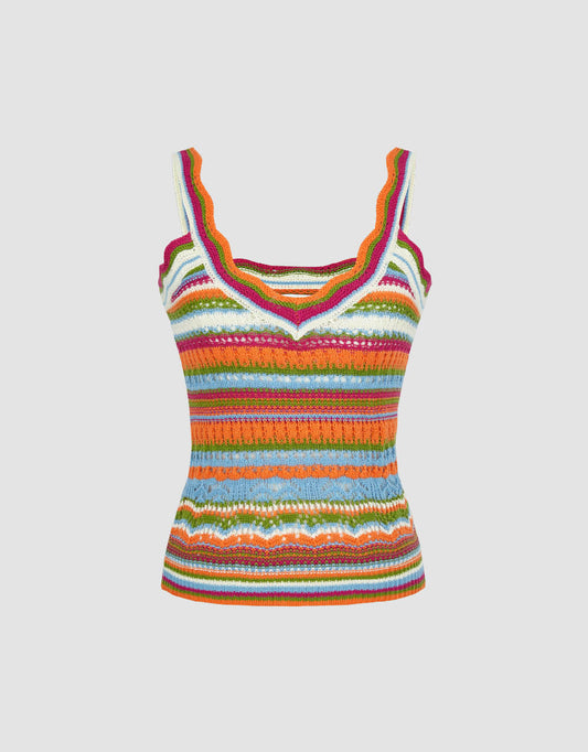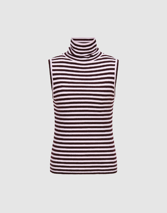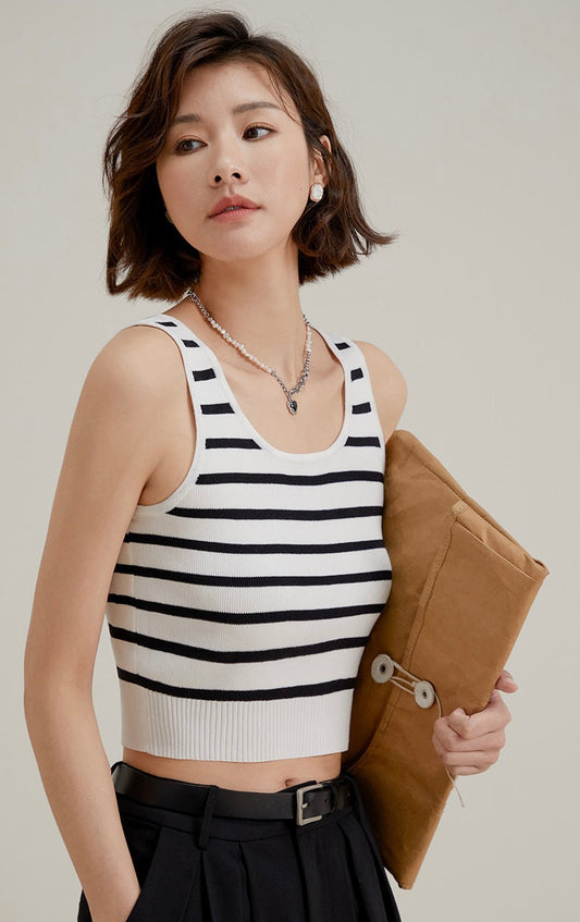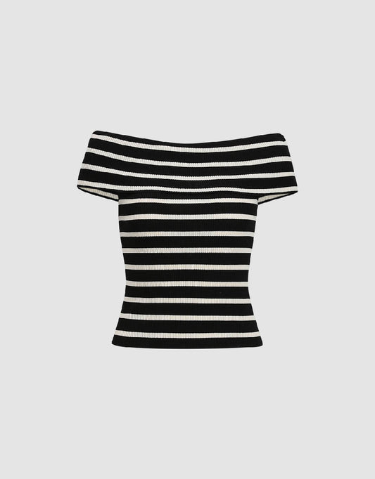Striped Sleeveless Off-Shoulder Knitted T-Shirt
