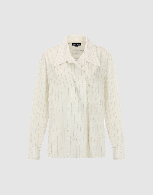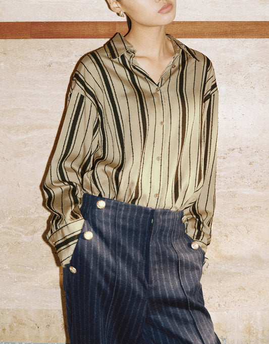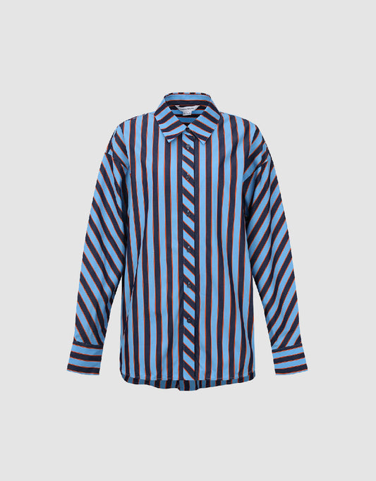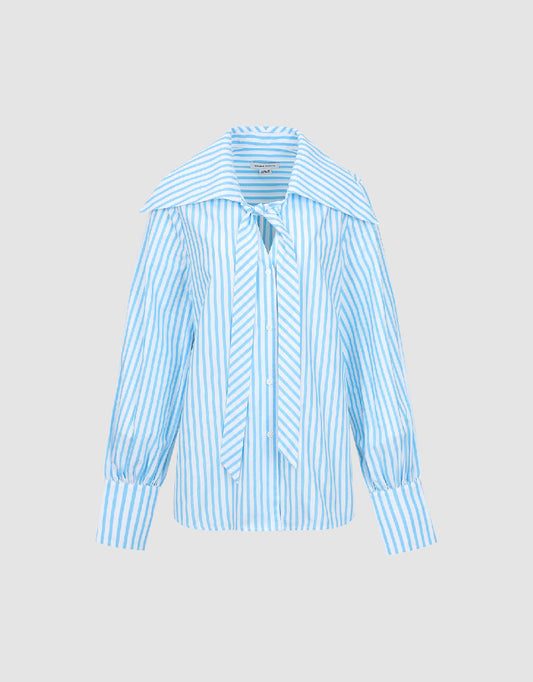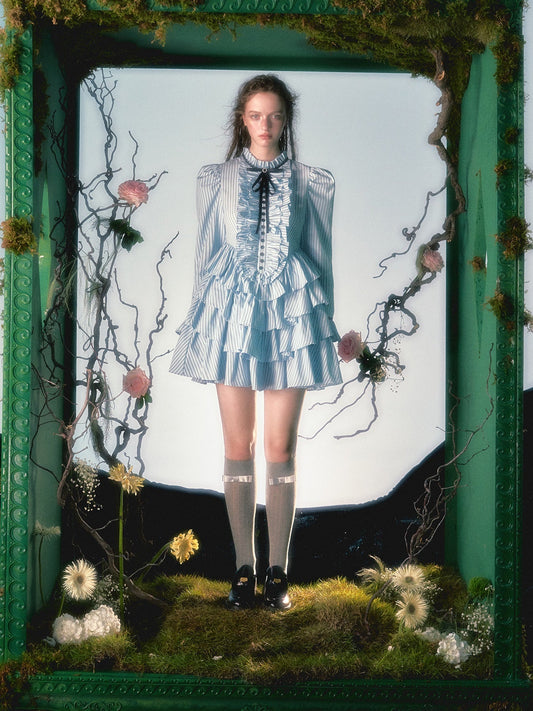 스트라이프 퍼프 슬리브 하이웨이스트 셔츠 케이크 드레스