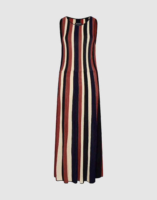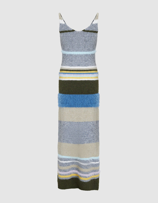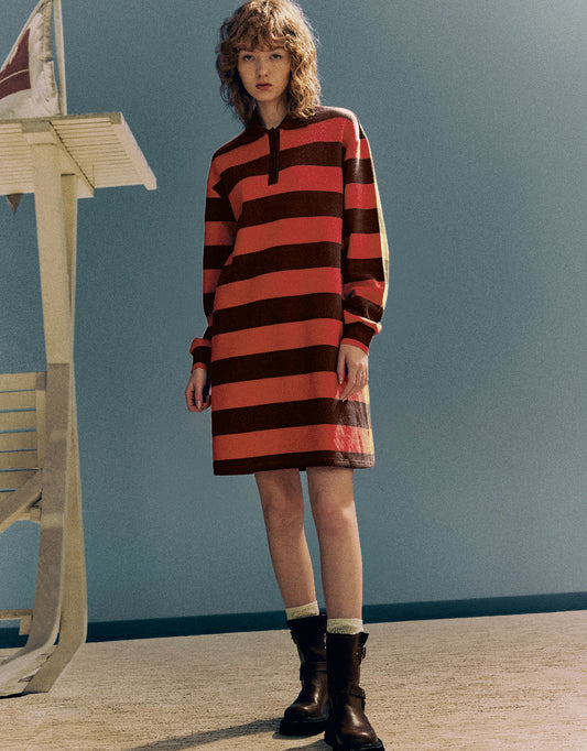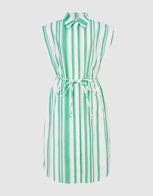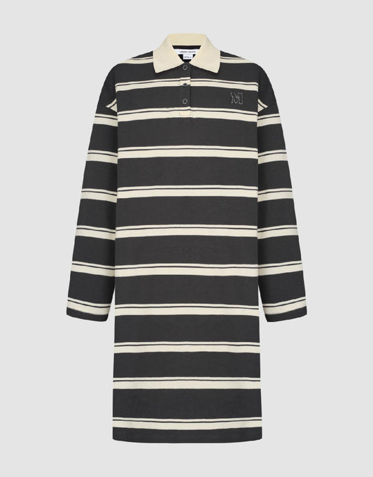 사이드 슬릿 스트라이프 민소매 폴로 드레스