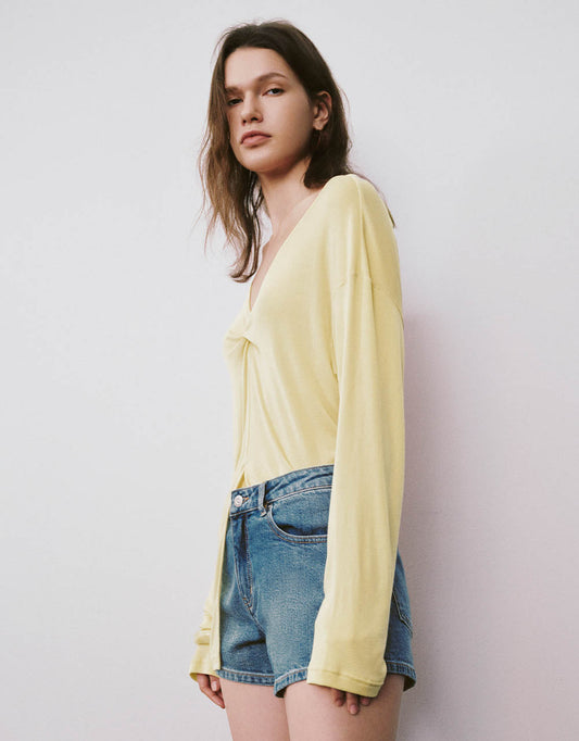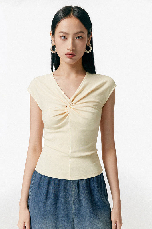 트위스트 디테일 캡 슬리브 탑 옐로우 색상