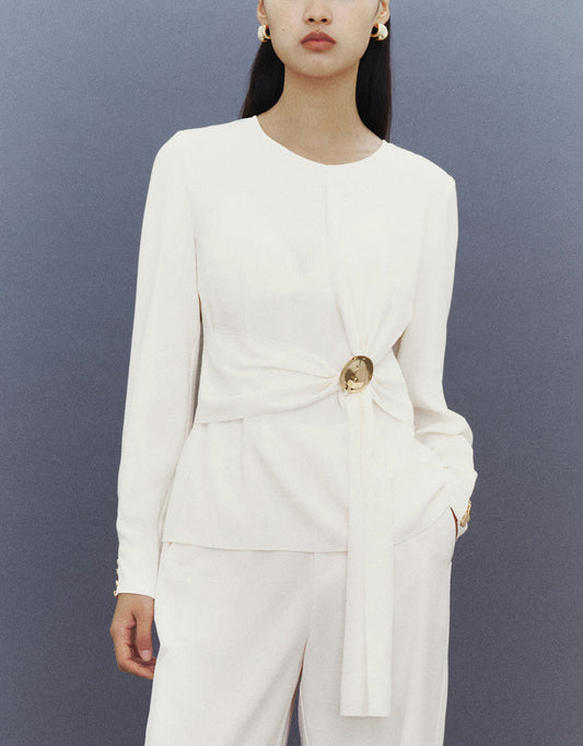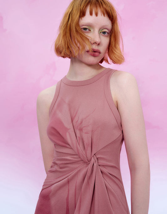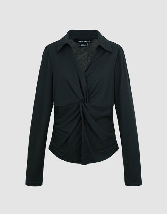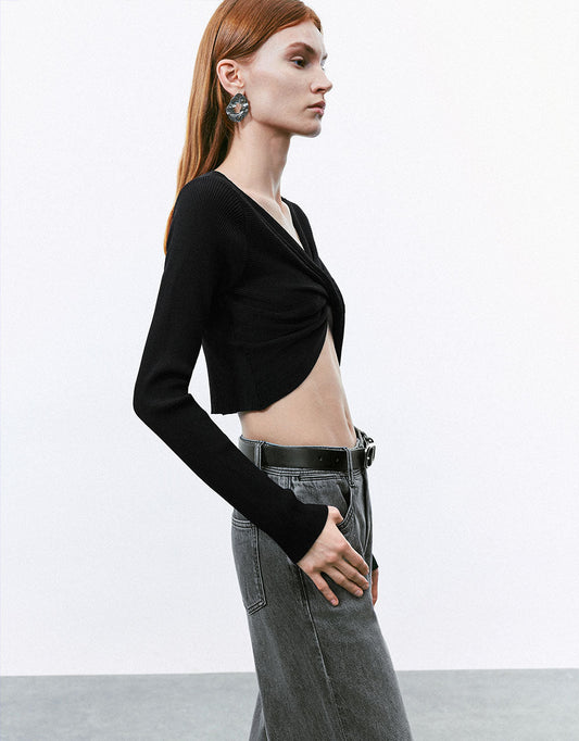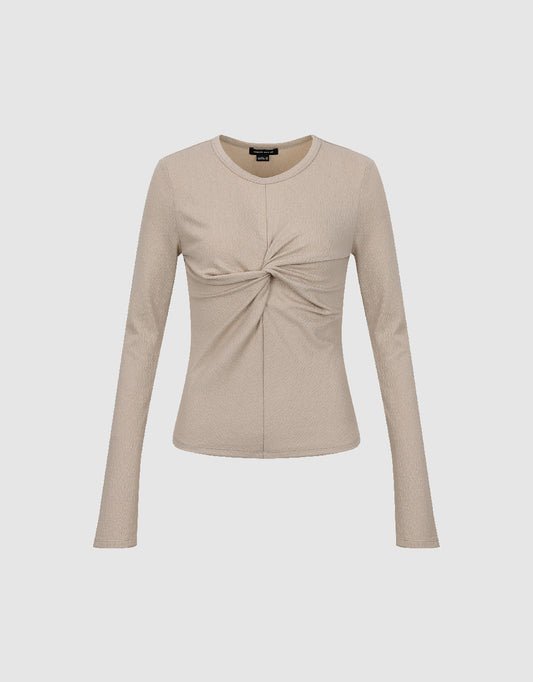 Twist Front Crew Neck Skinny Knitted T-Shirt