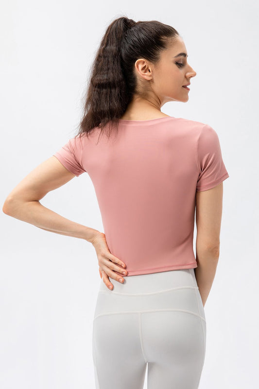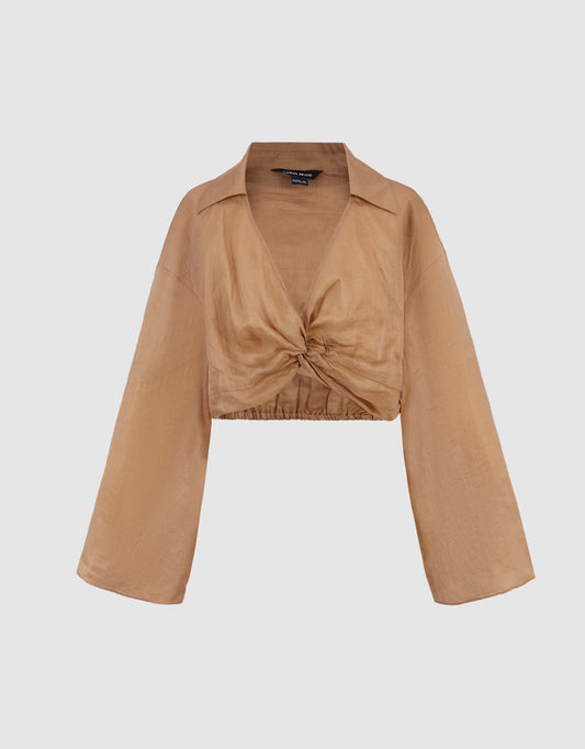 내장 브라가 있는 트위스트 프론트 크롭 탑