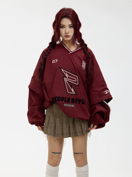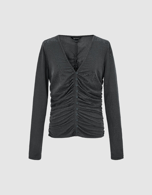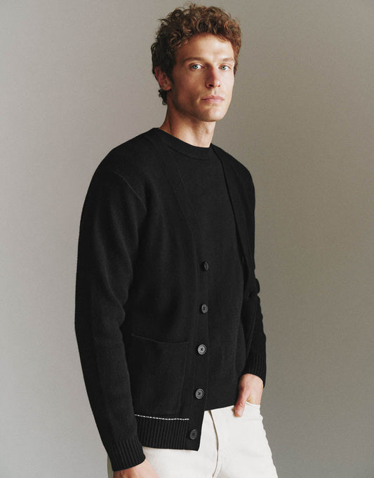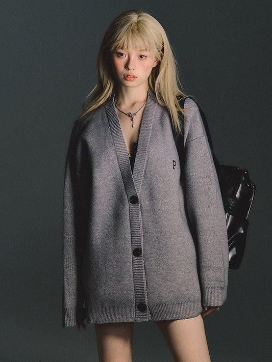 V-넥 니트 롱 오버사이즈 싱글 컬리지 가디건