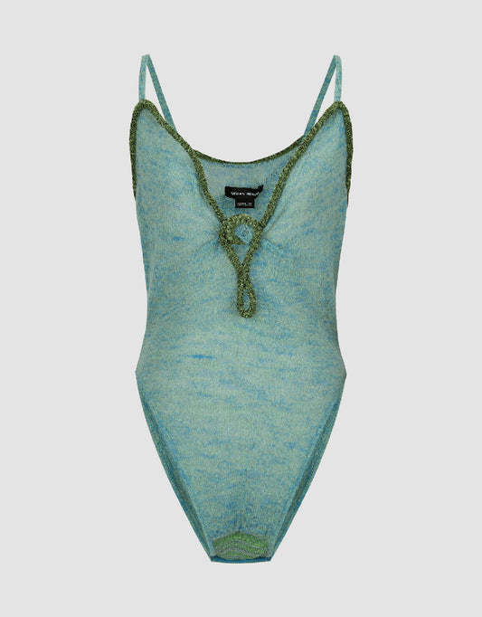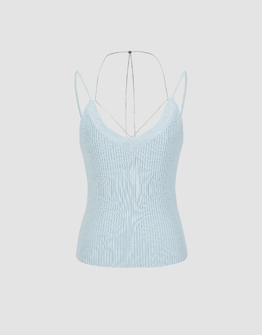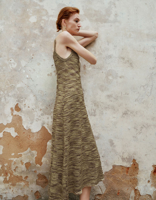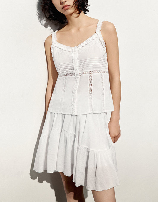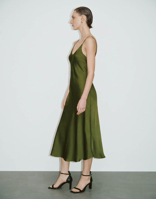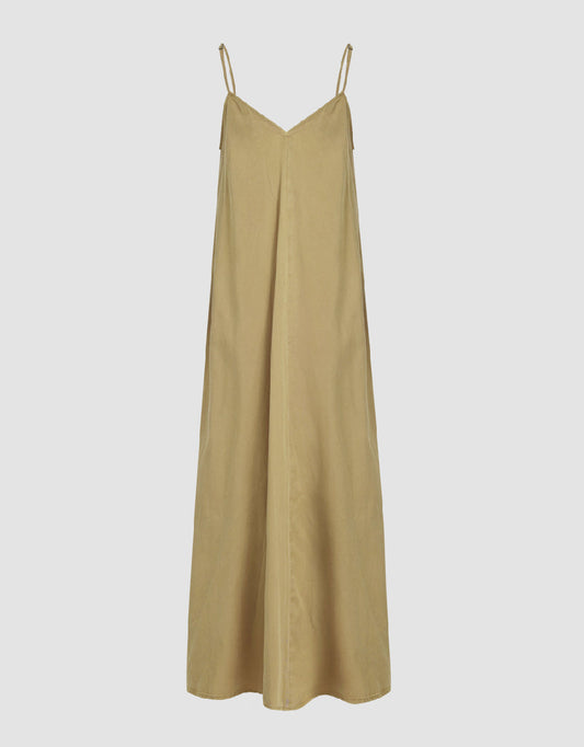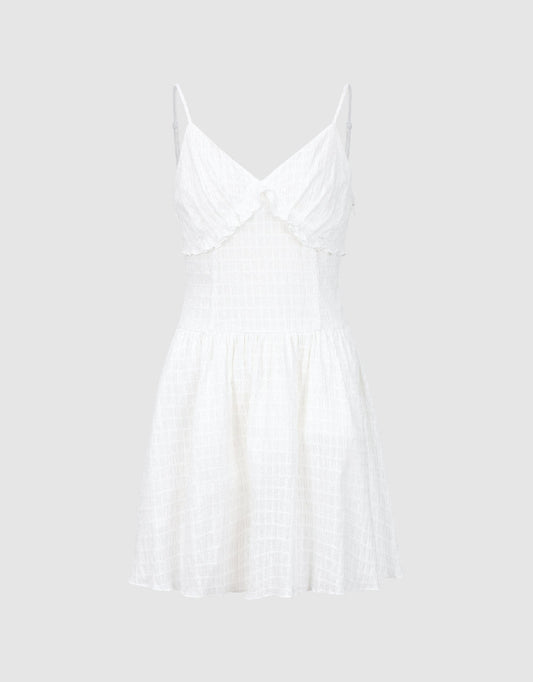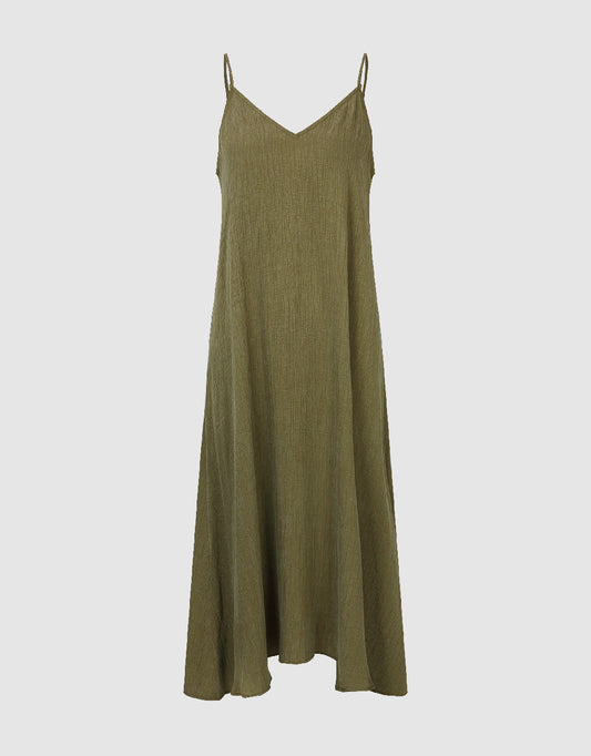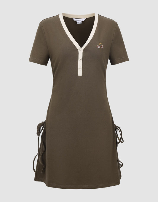 브이넥 자수 신치 웨이스트 스트랩 드레스