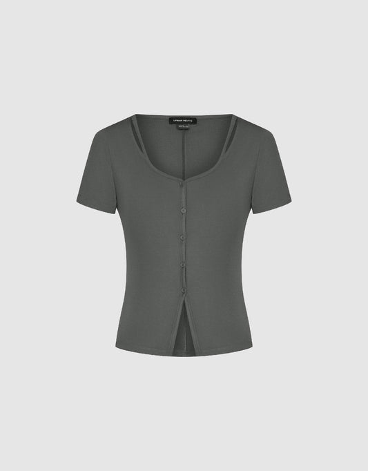 비대칭 밑단 V넥 플로럴 랩 드레스