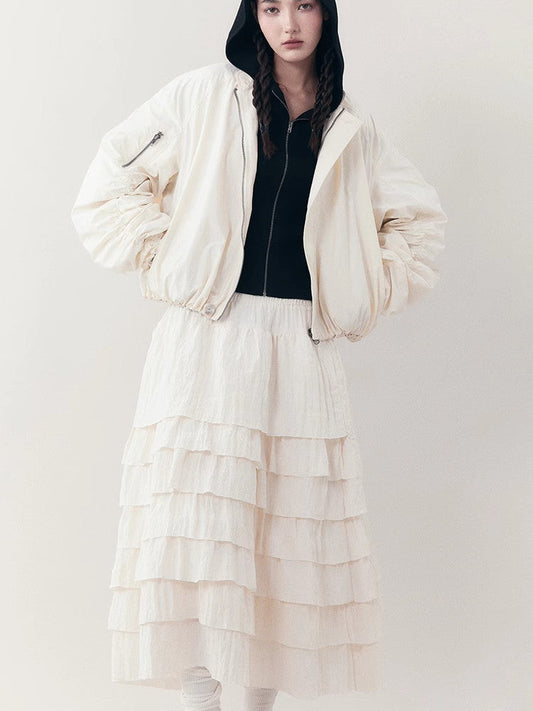 케이크티어드 내추럴 레트로 커버 롱스커트