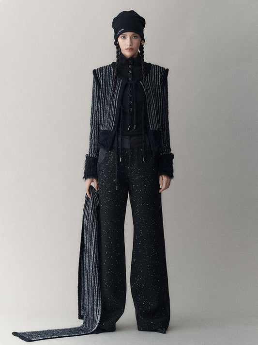 Cardigan with Flounce Trim Knit and Flared Sleeves