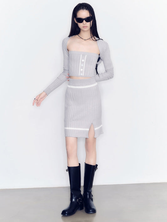 가디건&베어탑&스커트 니치 클래시 셋업