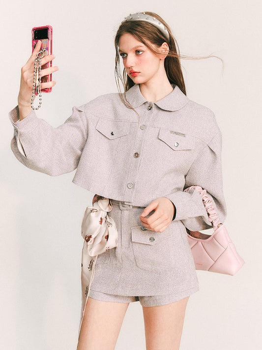 캐주얼 숏 자켓 & 튜브탑 & 큐로트