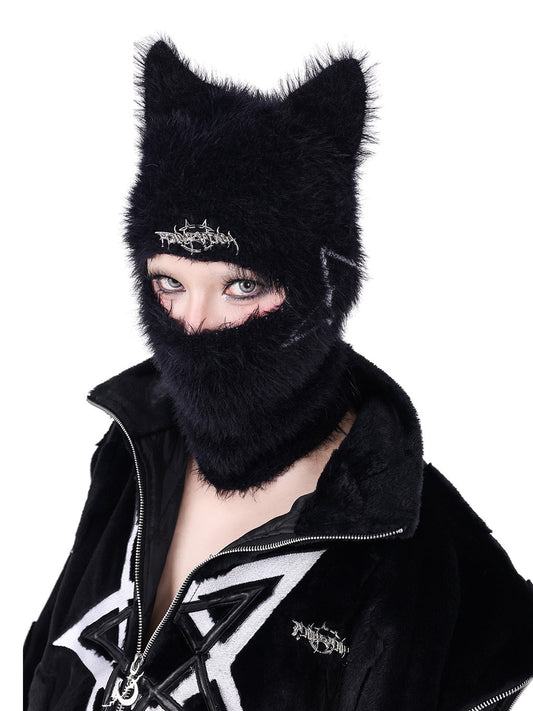고양이 귀 마스크 니트 모자