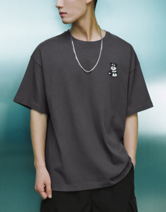Cat Embroidered Crew Neck T-Shirt