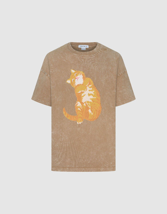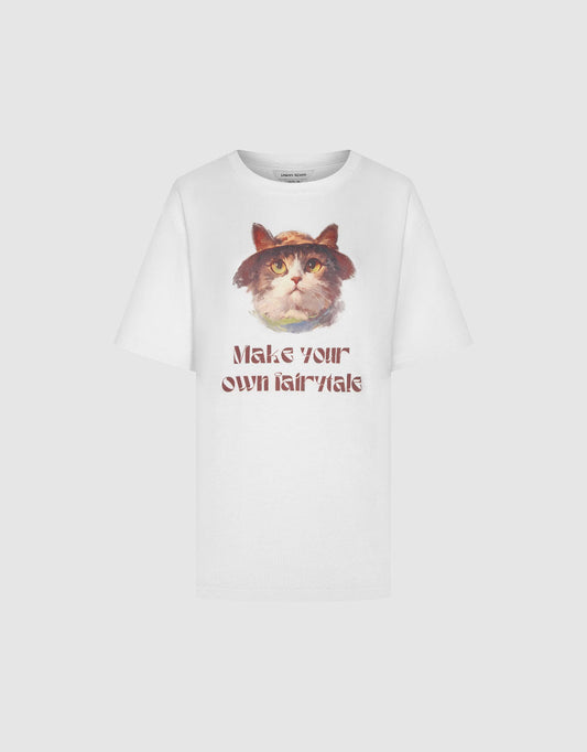 Cat Printed Crew Neck Loose T-Shirt