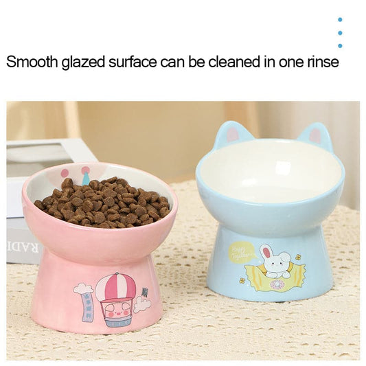 고양이 먹이 분지 세라믹 고양이 그릇 비스듬한 입 높은 발 경추 보호
