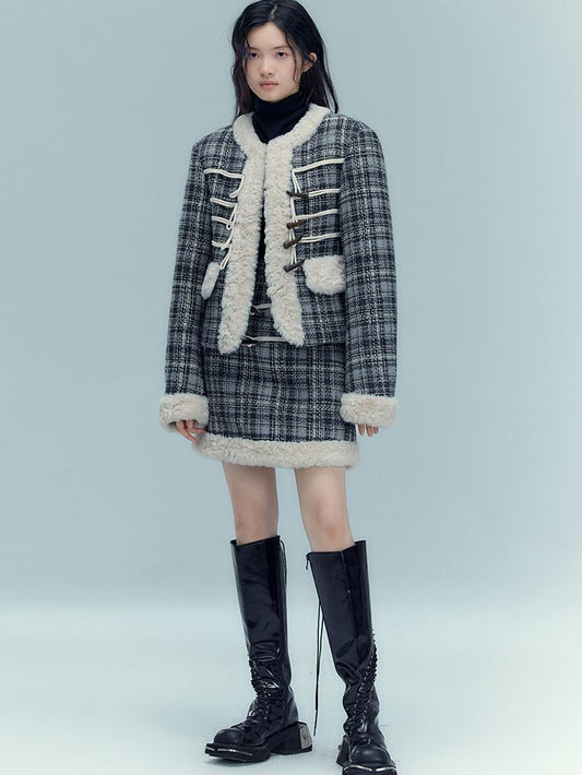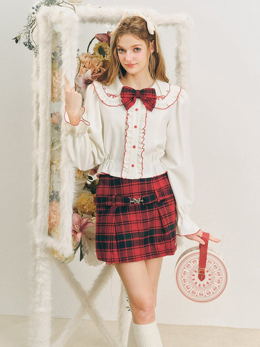 체크 걸리 퍼프슬리브 큐트블라우스&미니스커트