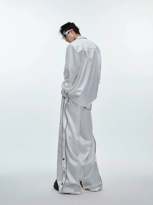 Chic Ice Silk Loose Pajama Set with Shoulder Pads | Deconstructed Design