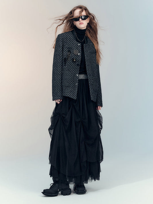시폰 티어드 쉬어 엘레강트 시크 롱스커트
