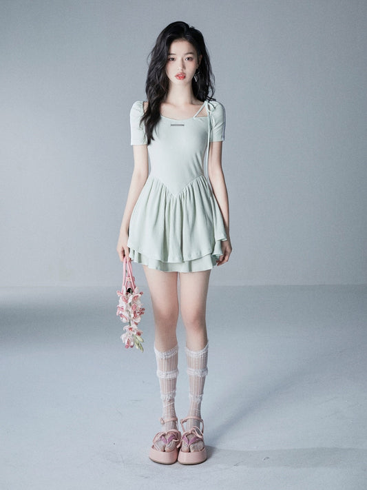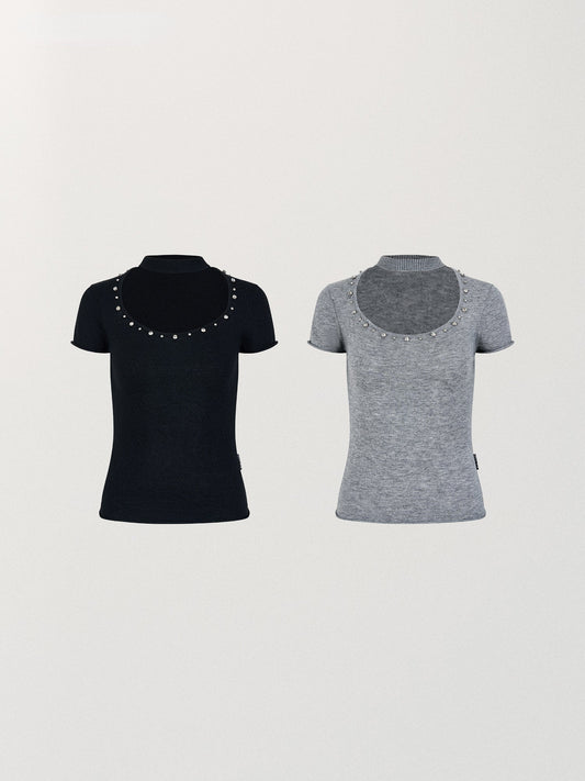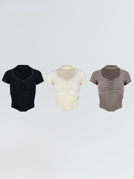 Choker Collar Rhinestone Cinched Waist T-Shirt