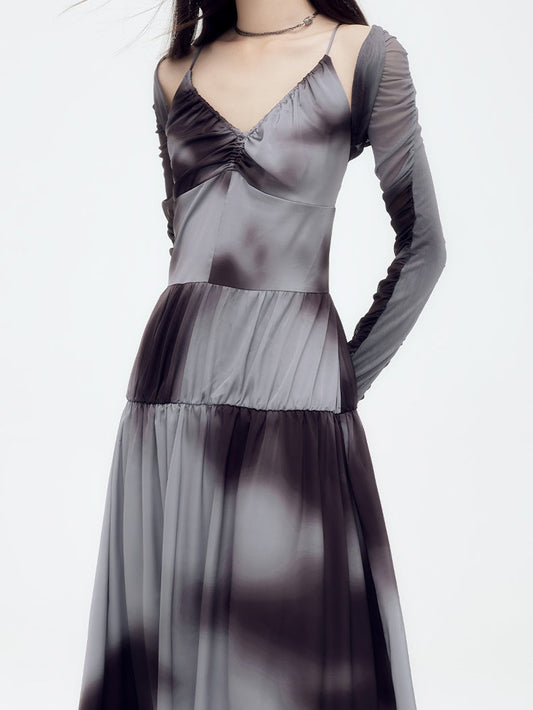시폰 유니크 그라데이션 게더 쉬어 가디건