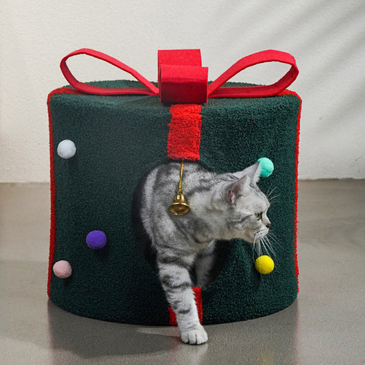 크리스마스 선물 상자 고양이 둥지 겨울 따뜻한 세탁 가능 완전 밀폐형 애완 동물 집