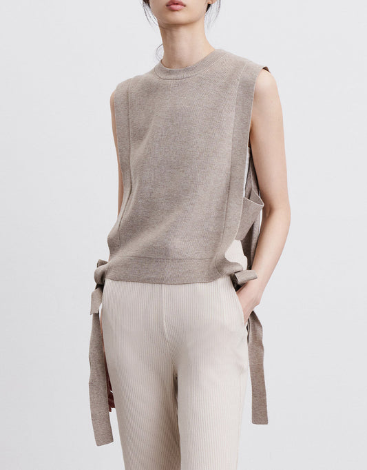 Crew Neck Mid-Length Knitted Vest