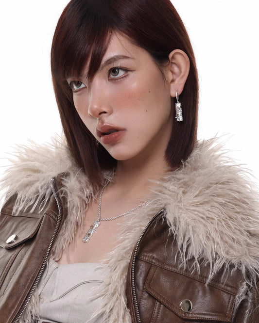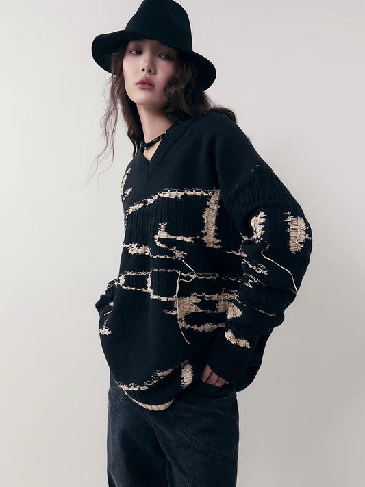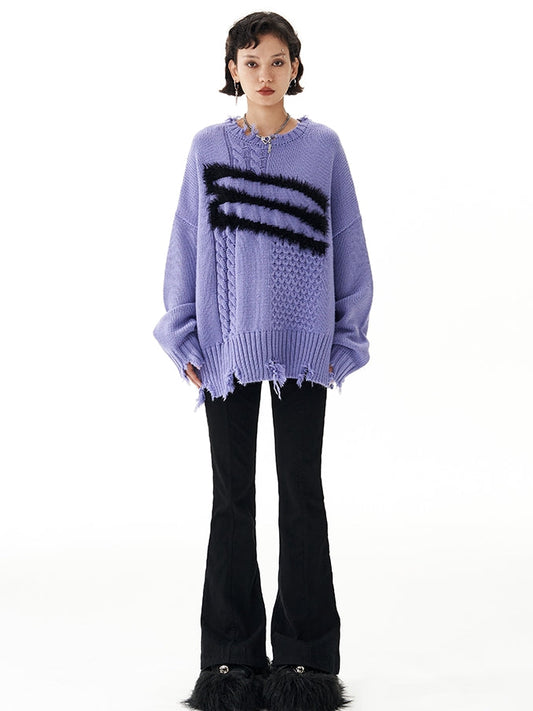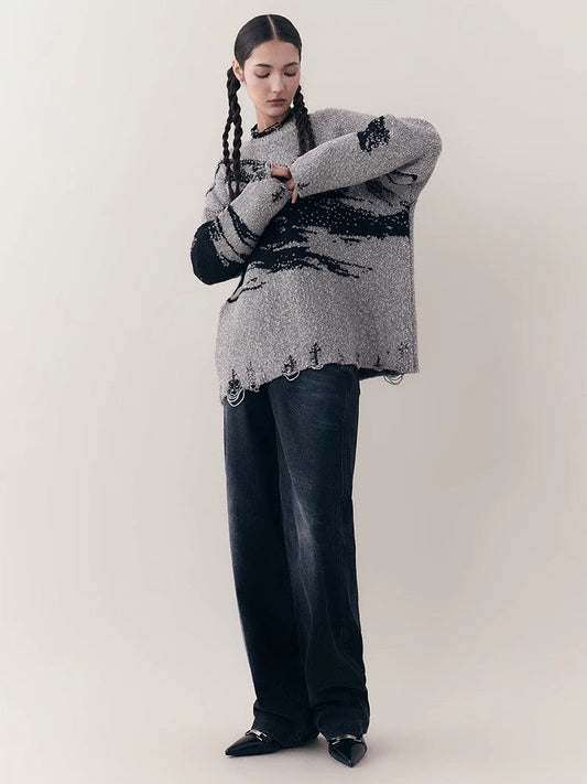 데미지 레트로 오버사이즈 드롭 숄더 시크 니트