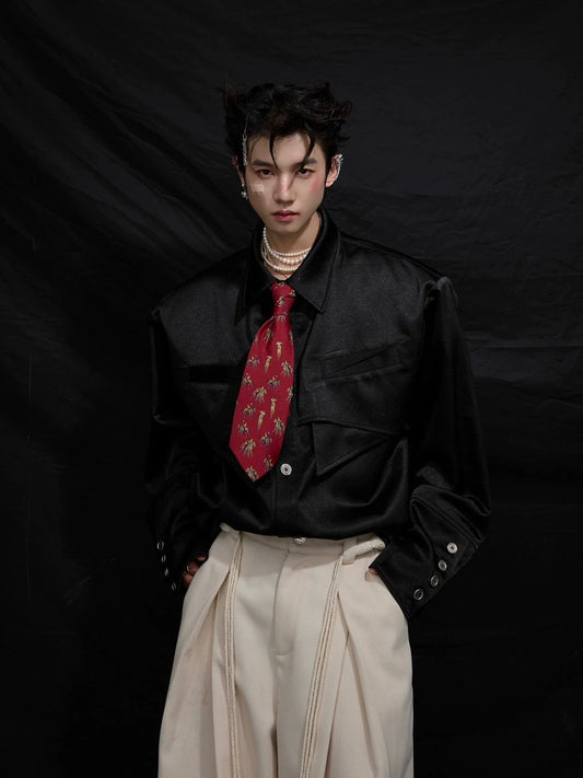 Deconstruct Metallic Long Sleeve Shirt with Removable Shoulder Pads
