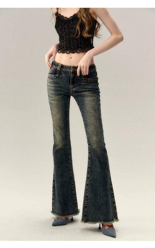 Deconstruct Geometric Washed Pleated Flare Jeans with Zipper Split
