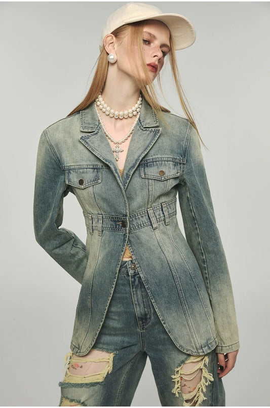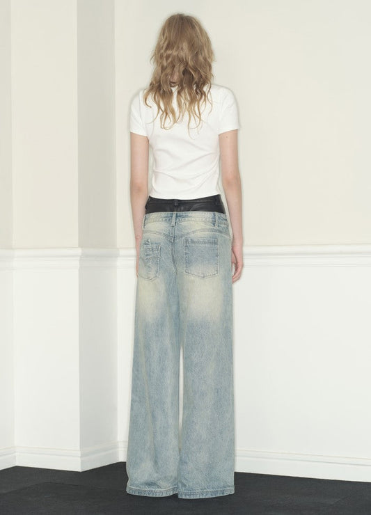 데님 빈티지 페이디드 레트로 루즈 와이드팬츠