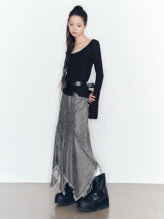 데님 태슬 캐주얼 패치워크 플레어팬츠