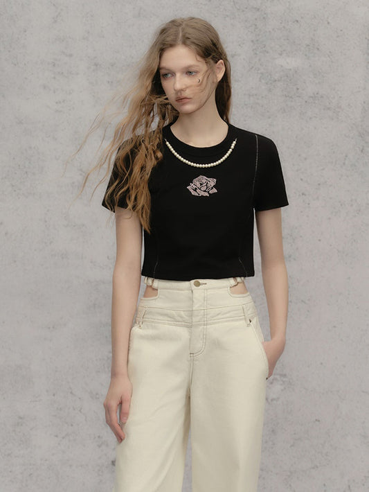 탈부착 가능한 모조 진주 목걸이 티셔츠