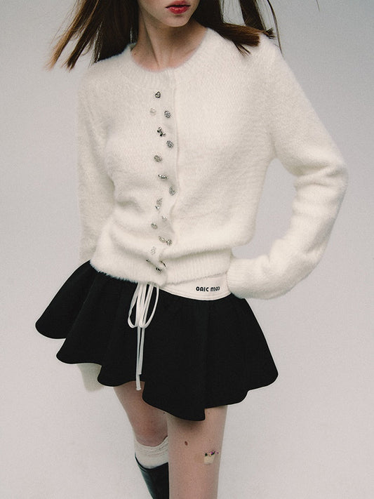 탈부착소매 화이트 긴팔 불규칙 드레스
